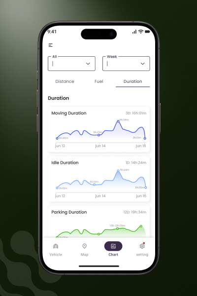 View complete travel history with detailed route maps and timestamps, ideal duration, parking duration, moving time and more...